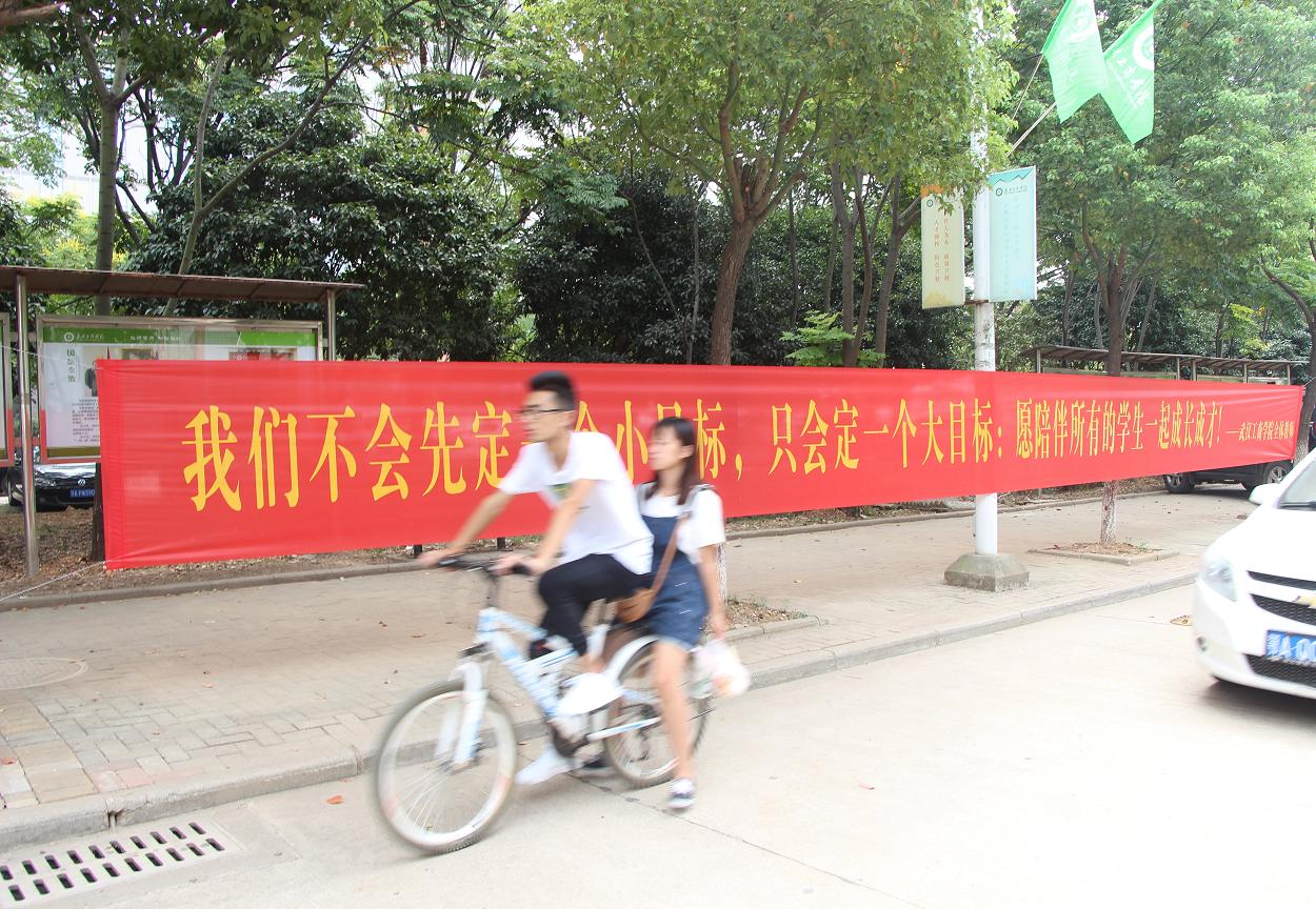 此外,该校的迎新标语“今天与父母的小别离,只为实现明天的大梦想”、“我们不会先定一个小目标,只会定一个大目标:愿陪伴所有的学生成长成才”等结合社会热词、热门电视剧,引得不少新生驻足在迎新标语处,大赞有创意。