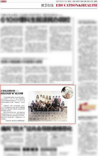 该系列作品创作过半时,就引起湖北美术出版社的关注。8月22日,徐郑冰老师代表12名学生与湖北美术出版社签订合作项目,将书名定为《手绘中国——字绘武汉》,11月正式发行。