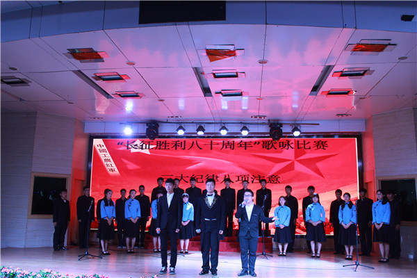 此次歌咏比赛共有来自各学院的10支队伍参赛。比赛在该校大学生艺术团弘韵合唱团带来的一首《旗正飘飘》中拉开序幕,他们用慷慨激昂的音调,铿锵有力的节奏,再现了当年中国工农红军奋战到底的抗战精神与誓死抗敌的坚定决心。