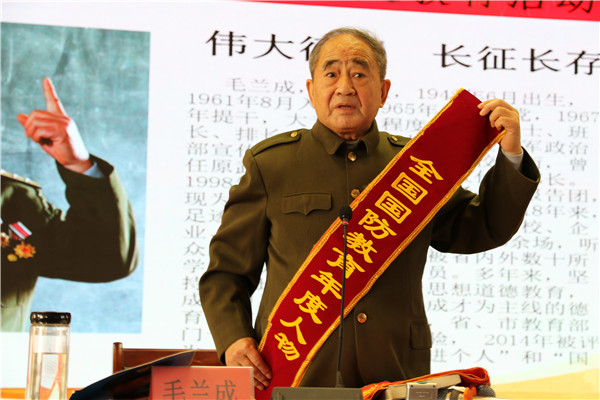 图为中部战区“老战士报告团”副团长毛兰成大校 摄影:李韶权