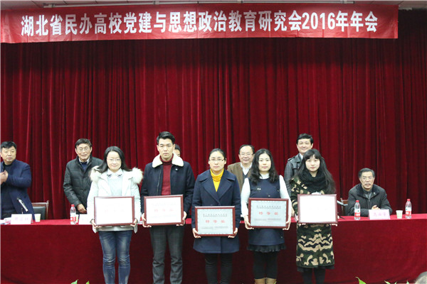 宣传策划部部长狄奥(前排左一)获评“2016年湖北省民办高校党建与思想政治教育研究会活动积极分子”