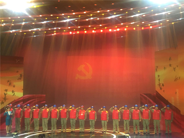(“光满·爱心红丝带”服务队在现场重温入党誓词)