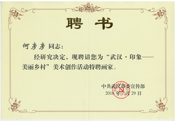 本次创作活动采取特聘约稿方式,参与创作的艺术家包括湖北美术学院院长徐勇民、湖北美术学院水彩画系主任刘寿祥、江汉大学艺术学院院长王心耀、武汉美术馆馆长樊枫等。何彦彦老师是作为省内民办高校教师代表中唯一受聘画家参加该创作活动。