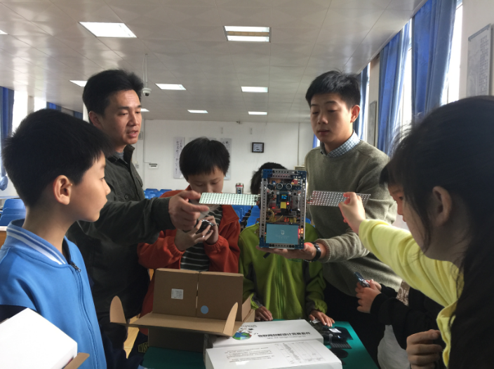 所谓创客教育就是以项目学习的方式,使用开源硬件和图形化编程,让学生动手实际操作,再结合物联网,让传统的物件连接上网络,让它们“智能化”。李紫阳团队首创的这个项目,得到了武汉市教科院的重视,正在逐步向多所学校推广。