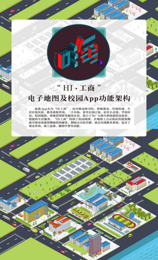 图为教师组银奖作品《“Hi 工商”电子地图及校园App功能架构》 作者:彭娅菲 周晶