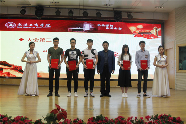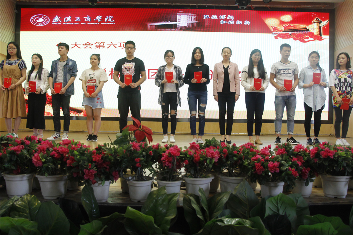 大会在庄严的国歌中拉开了序幕。随后,陈义文部长宣读了《关于表彰2016-2017学年“青年标兵”、“红旗团支部”、“先进团支部”、“模范团干”、“优秀团员”以及“七彩”文化艺术节子活动获奖的决定》,授予胡笑沙等五名同学“青年标兵”荣誉称号,信息工程学院2014级计科实验班等五个团支部“红旗团支部”荣誉称号,管理学院2014级会计本10班等4个团支部“红旗团支部”荣誉称号,任豫媛等76名同学校级“模范团干”荣誉称号,罗娇娇等262名同学院级“模范团干”荣誉称号,张兴宇等675名同学校级“优秀团员”荣誉称号,周琼等725名同学院级“优秀团员”荣誉称号,并且对七彩文化艺术节子活动中获得冠亚季军的学院和个人进行了表彰。陈伟书记、孙松发副书记、桂裕清副校长、王曼部长等领导分别为获奖学院和个人颁发荣誉证书和奖状,并合影留念。