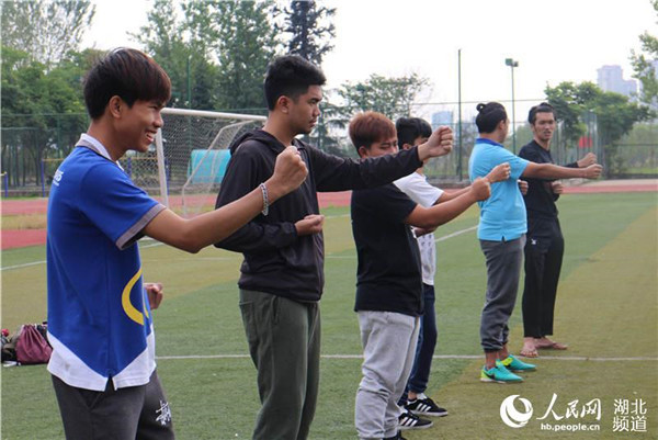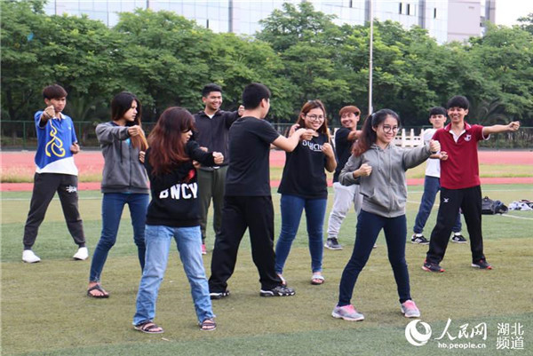 人民网武汉6月8日电(通讯员 王依林)“出拳快如闪电,在很短距离就能瞬间击倒对手,这是咏春拳这一中华民族传统武术的重要特点。”6日上午,在新葡的京集团35222vip操场上,该校咏春社的社长秦俊杰一边向前来该校访问交流的泰国学生示范咏春拳的拳法,一边耐心地讲解咏春拳的要领。这群泰国学生来自泰国皇家理工大学,前不久从泰国来新葡的京集团35222vip交流访问,主要目的是体验中国高校的校园生活,感受中国传统文化的魅力。