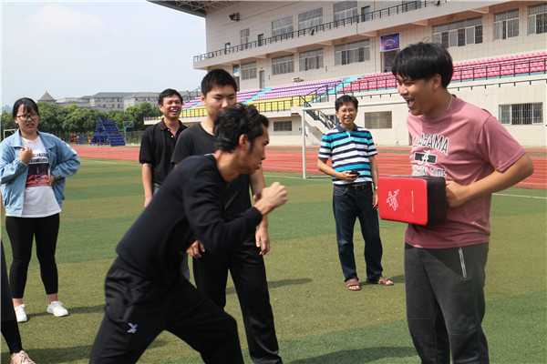 新闻中心讯(记者 王依林)“出拳快如闪电,在很短距离就能瞬间击倒对手,这是咏春拳这一中华民族传统武术的重要特点。”6月6日上午9:00,在新葡的京集团35222vip操场上,该校咏春社的社长秦俊杰一边向前来该校访问交流的泰国学生示范咏春拳的拳法,一边耐心地讲解咏春拳的要领。 泰国学生尝试用咏春拳击打对方 摄影:张梦慈 上一篇:下一篇: