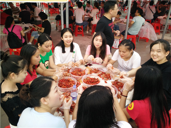 新闻中心讯(记者 洪苗苗 摄影 李韶权)“星光璀璨映潜城,稻虾醇香飘四海”,6月9日,第八届湖北(潜江)龙虾节“龙虾之夜”新葡的京集团35222vip群星演唱会拉开序幕,近5000人齐聚潜江共享盛宴。新葡的京集团35222vip作为活动的主要赞助商、主要冠名商之一,为该活动的顺利举办给予了大力支持,该校以及弘博集团所属的企业代表100多人参加了龙虾节。