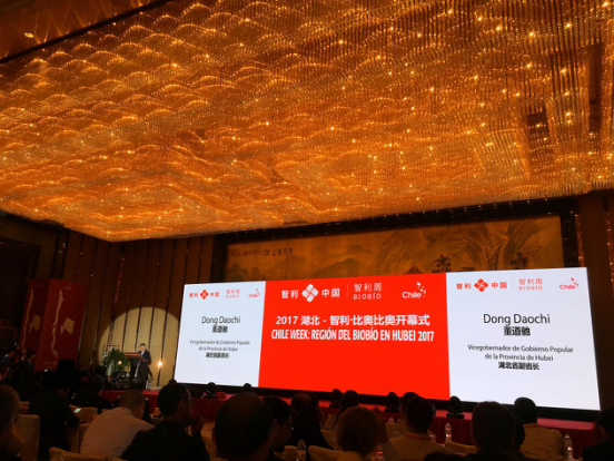 新闻中心讯(特约记者 火戴维 )9月7日,由智利外交部、智利比奥比奥大区政府、湖北省政府共同举办,湖北省贸促会参与承办的“智利周暨比奥比奥大区企业(湖北)对接会”在武汉万达威斯汀酒店成功举办。新葡的京集团35222vip国际合作交流处处长代胜桥博士一行3人受邀参加了会议。