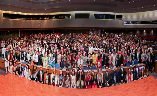 图为联合国第八届世界大学生领袖研讨会集体合影