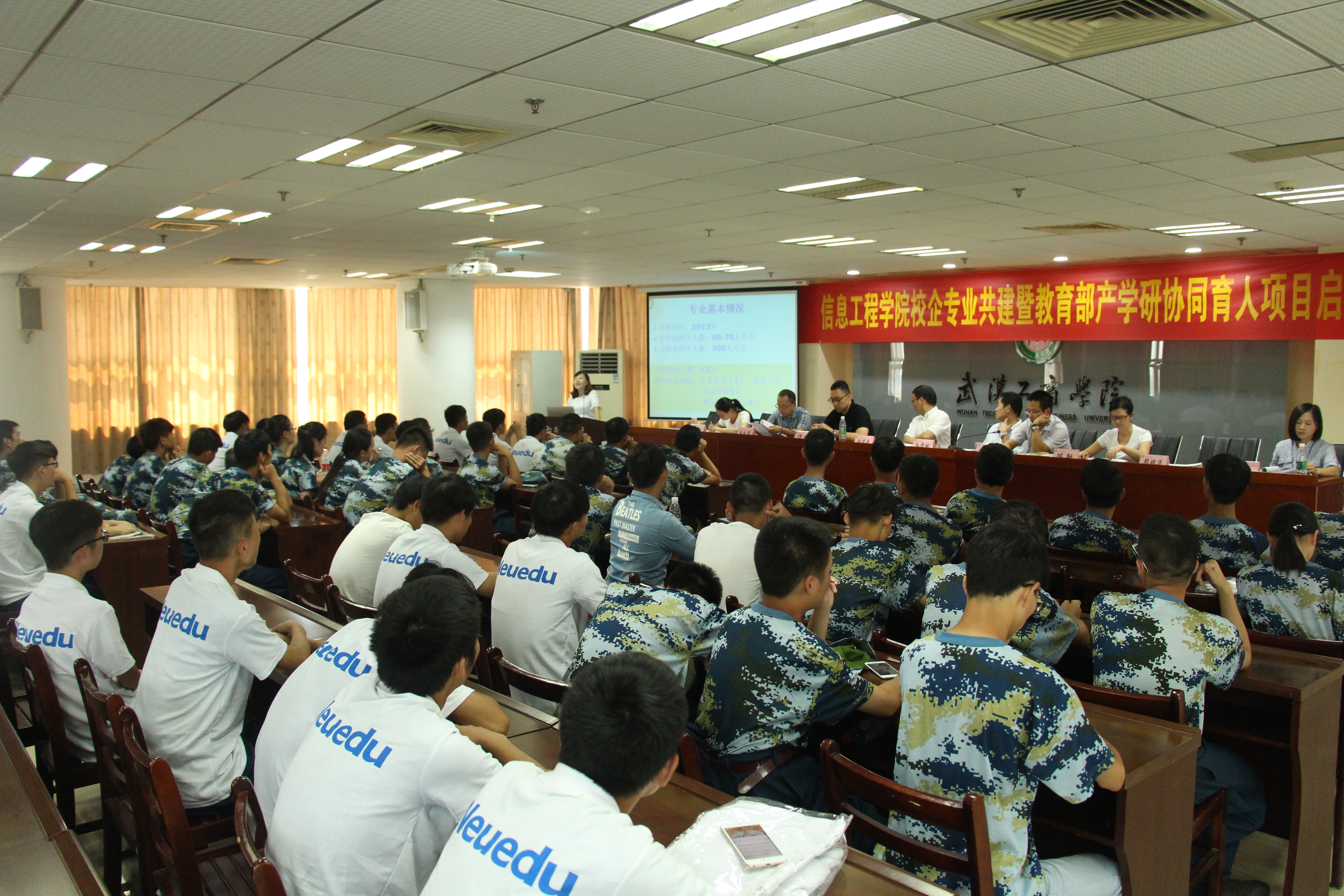 新闻中心讯(记者陈小盼)9月14日中午12:30,新葡的京集团35222vip信息工程学院在该校综合楼十楼第三会议室召开校企专业共建暨教育部产学研协同育人项目启动会。东软睿道教育信息技术有限公司总经理谭帅、华中区院校合作高级经理周凤章,该校信息工程学院院长孙宝林、常务副院长胡成松、党总支书记陈敏,教务部副部长金学武,信息工程学院电子信息工程系主任邓明华、副主任葛蓁,以及电子信息工程学院2017级所有新生参加了会议。会议由胡成松副院长主持。