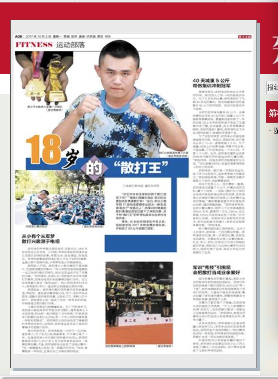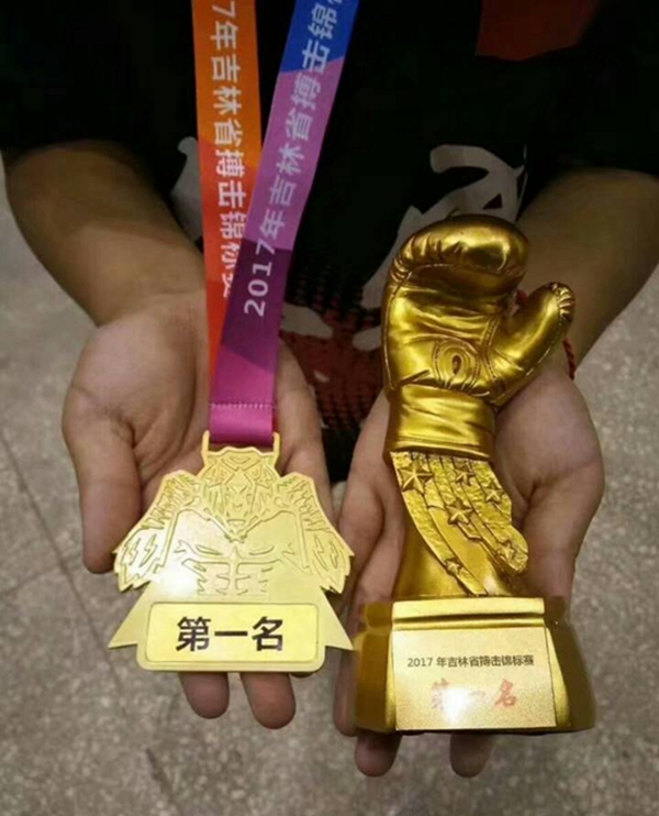 原来,18岁的武明泽在开学之前,刚刚参加完2017吉林省搏击锦标赛,并斩获了85公斤级散打冠军。