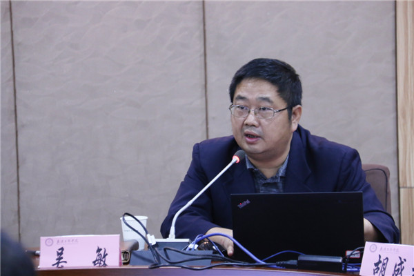 图为学校评建办主任吴敏作评估专项工作介绍  吕志新 摄