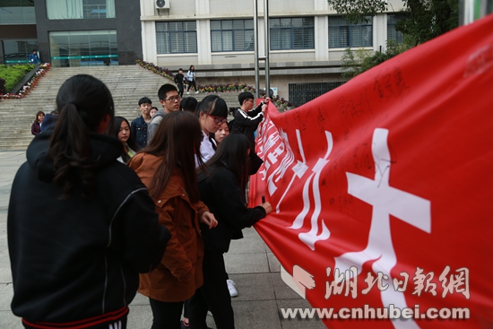 该校学生在喜迎十九大横幅上签名