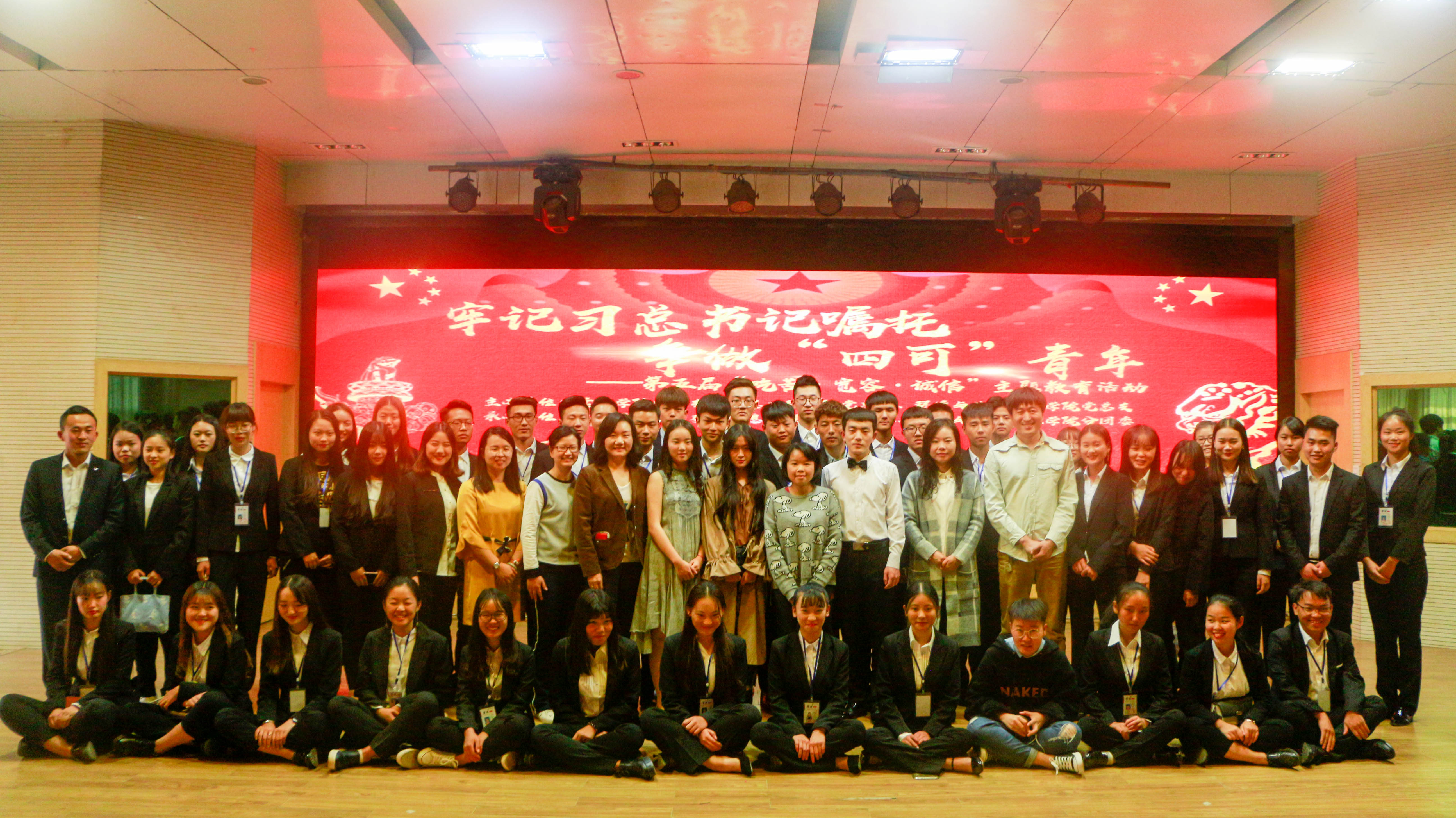 参与“吃苦·宽容·诚信”主题教育活动的学生合影 摄影代悦涵