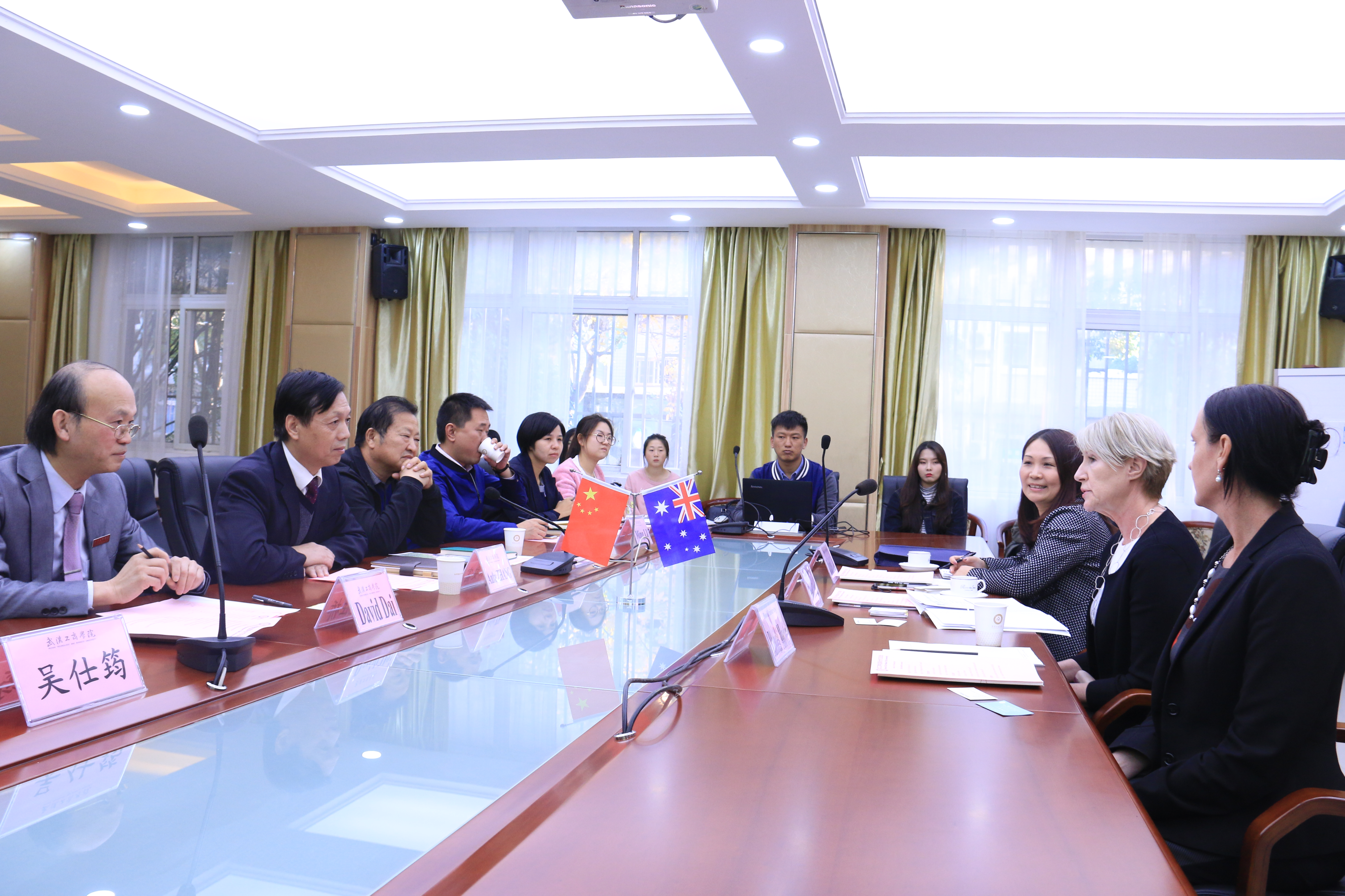 新闻中心讯(特约记者 火戴维 见习记者 许锌 杨旭)10月30日下午16:00,澳大利亚邦德大学健康科学和医学院行政院长Helen Chenery、健康医学和医学院行政总监Rhonda Morton、国际部经理Rachel Lu来新葡的京集团35222vip访问交流,并在新葡的京集团35222vip国际会议室召开座谈会。该校校长张安富、副校长夏再兴、国际合作交流处处长代胜桥、环境与生物工程常务副院长吴士筠、国际教育学院办公室主任张梦慈、国际合作交流处国际项目部主任孔少敏、国际教育学院项目主管张青参加了座谈会。会议由代胜桥处长主持。