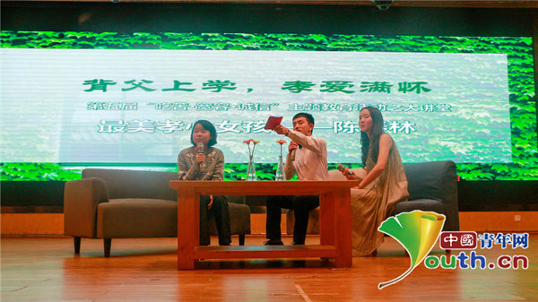 最美孝心女孩”陈春林来到大讲堂现场分享了自己“背父上学”的孝行。原本陈春林有一个幸福美满的家庭,可惜天降横祸,先是母亲突发脑溢血猝然离世,不久父亲又突发脑梗瘫痪在床。面对突发的家庭变故,善良、坚强的她用自己瘦小的身躯毅然挑起生活的重担。为了继续完成学业和照顾好病瘫在床的父亲,2013年年仅16岁的陈春林决定背上父亲去上中学,一边读书,一边照顾父亲。如此坚持了5年,2017年陈春林被华中师范大学录取,便开始了背着父亲上大学的生活。回忆自己的坎坷之路,陈春林笑着说,自己必须成长。她还向大家分享道,“人生虽有苦难,但不要被困难所吓到,要调整好自己的心态,积极地面对。等待时间的推移,你会发现那段时光是宝贵的财富。”
