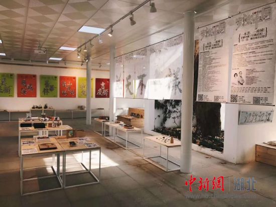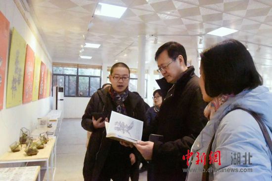 徐郑冰老师正在向观展人员介绍字绘武汉作品
