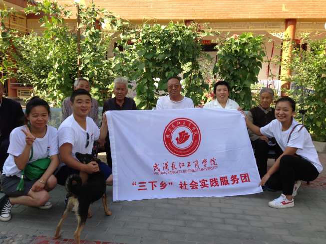 武汉长江工商学院大学生“三下乡”社会服务团在开展关爱孤寡老人活动。