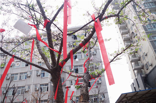 在该校综合楼通往一食堂的主干道上九棵大树连成的许愿林中,挂着许多木质的许愿牌。校党委书记陈伟也参与其中,拿起笔来,豪气地在许愿牌上写下“勤于追梦”四个字,并悬挂在心愿林中,激励着莘莘学子。