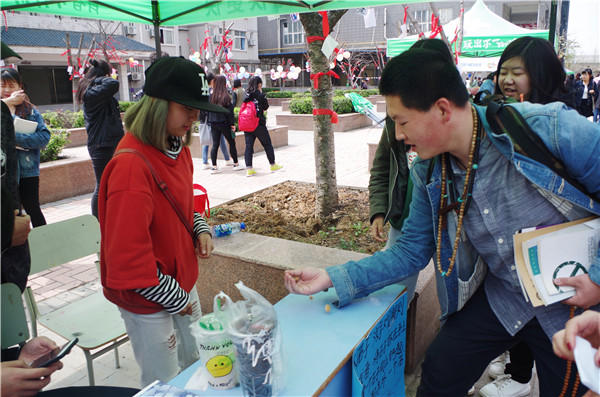 “下课后从综合楼走出来,看到整个校园顿时换了新装,让我眼前一亮,我被这种浓烈的节日气氛感染了,于是迫不及待的开始自拍和参加各种小游戏活动”该校旅游管理专业大三学生方草兴奋地说。