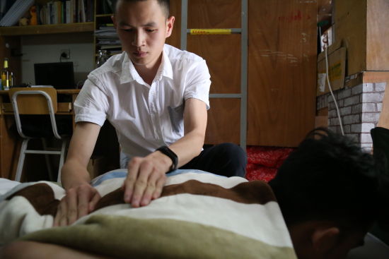 陈世聪为同学按摩 荣艺 摄