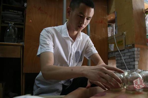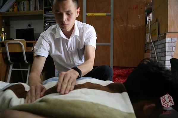 “他的手法很娴熟很专业,每次都会先帮我全身放松按摩一下,再给我拔罐,然后根据火罐留在身体上的颜色告诉我最近身体出现的一些‘小毛病’,提醒我在日常生活中应该注意什么。每次拔完罐后,我都感觉整个人很轻松,大学里能有这样一个室友真的太幸福了!”陈世聪的室友詹才钧说道。