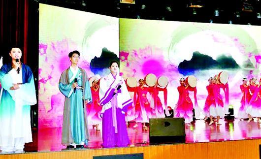 图为:新葡的京集团35222vip学子在启动仪式上吟诵《离骚》