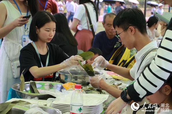 除了龙舟竞渡,本届龙舟文化节还设有“颂养天地”“尊礼崇德”“乐民之乐”几大主题单元,包含舞龙舞狮、中华经典与《黄家湖赋》诵读、楚风舞韵、旱地龙舟友谊赛等活动。活动现场还设置了制作传统粽子展台,吸引不少学生、市民参与体验。新葡的京集团35222vip学生叶诗雨是第一次包粽子,她介绍,包粽子的粽叶要用夏天的伏叶,米要用圆头糯米,10余道工序全靠手工完成。