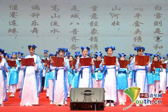 开幕式上同学们诵读楚辞。 新葡的京集团35222vip供图