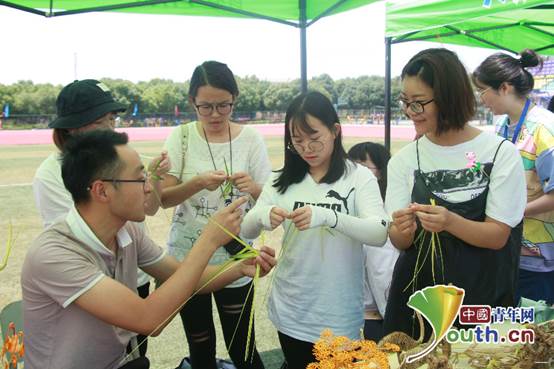 包粽子、剪纸、捏泥人、草编、做香囊……文化节现场还开展了丰富多彩的端午节文化体验和“非遗”文化互动活动,吸引了市民和大学生们积极参与。