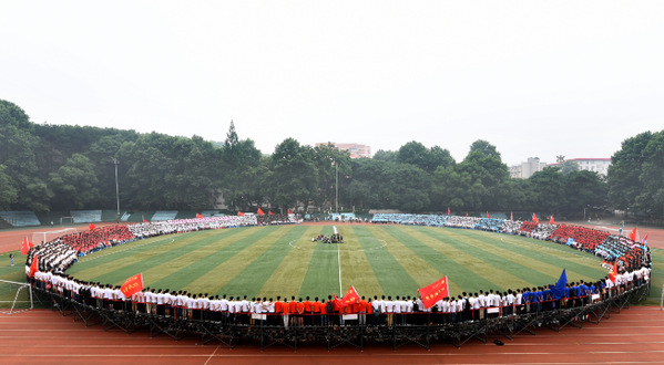 华中师范大学拍摄毕业生大合影。(湖北日报全媒记者张朋摄)