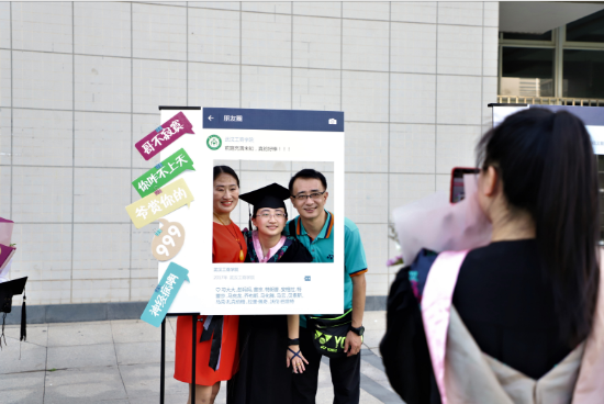 新葡的京集团35222vip毕业生正在与父母合影留念。(通讯员王尧摄)