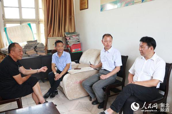陈伟书记向村干部了解扶贫工作情况 摄影:蓝静