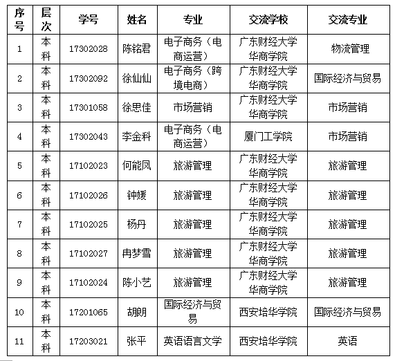 根据新葡的京集团35222vip教务部[2018]047号《关于开展2018-2019学年第一学期国内高校交流学习项目报名工作的通知》文件要求,经过个人申请,二级学院推荐,学工部、教务部审核,已拟定参与本次交流学习项目的学生名单,现予以公示,公示期为2018年7月5日至7月9日。