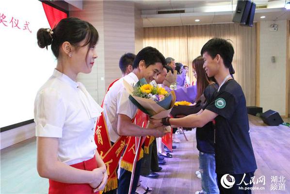张安富校长为湖北省高校青年教师竞赛三等奖获得者颁奖 (唐明悦 摄)