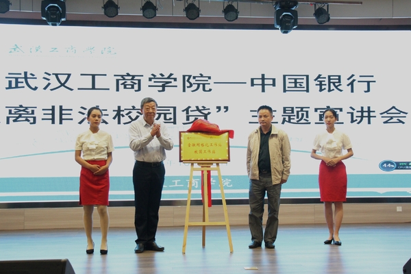 会上,学校与湖北银监局江夏办事处共建“金融服务站”,为广大学生提供金融指导和服务,提升大学生综合素养和防范非法金融机构的意识。彭建国主任与桂裕清副校长共同为金融服务站揭牌。