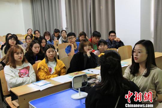 面试化妆指导老师为学生现场演示讲解形象管理技巧 胡爽 摄