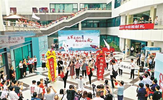 “与军运同行,向祖国献礼”的横幅高高挂起,“我和我的祖国,一刻也不能分割”的旋律,回荡在中庭。