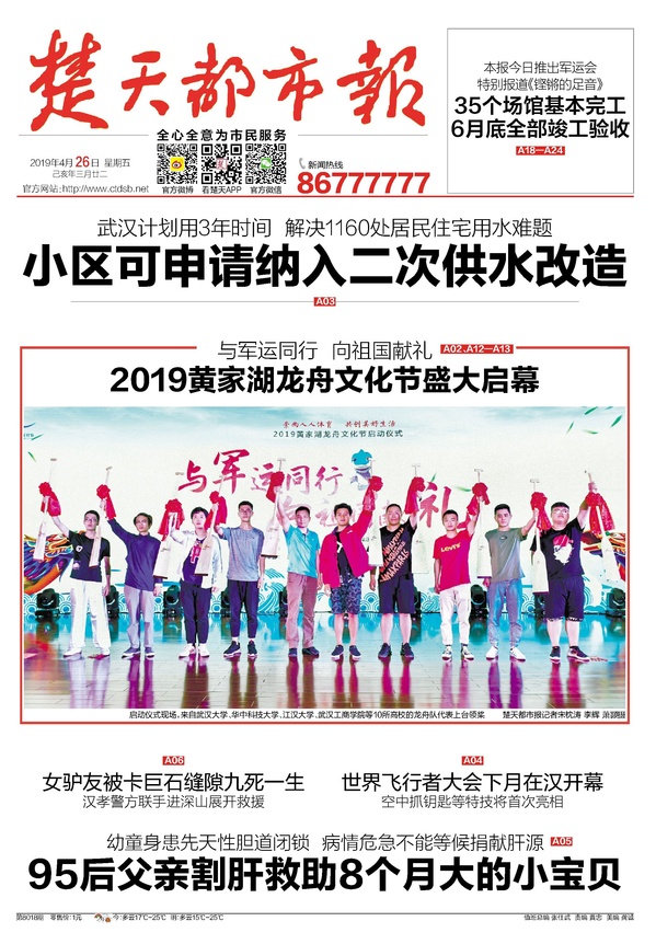 楚天都市报讯(记者胡勇谋 通讯员狄奥 彭宠 蓝静)“我和我的祖国,一刻也不能分割,无论我走到哪里,都流出一首赞歌……”昨日下午2时30分,楚天传媒大厦一楼突然响起《我和我的祖国》嘹亮的歌声。这是新葡的京集团35222vip的近百名学子,用一场让人震撼的快闪,拉开“与军运同行向祖国献礼”2019黄家湖龙舟文化节启动仪式的帷幕。