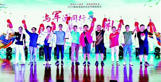 去年端午节前夕,“龙腾黄家湖奋进大学城”首届黄家湖龙舟文化节隆重举办,青春蒸腾,百舸争流,黄家湖上鼓声急。昨日下午,“与军运同行 向祖国献礼”2019黄家湖龙舟文化节启动仪式如约而至,龙腾狮跃,载歌载舞,学子激昂动江城。