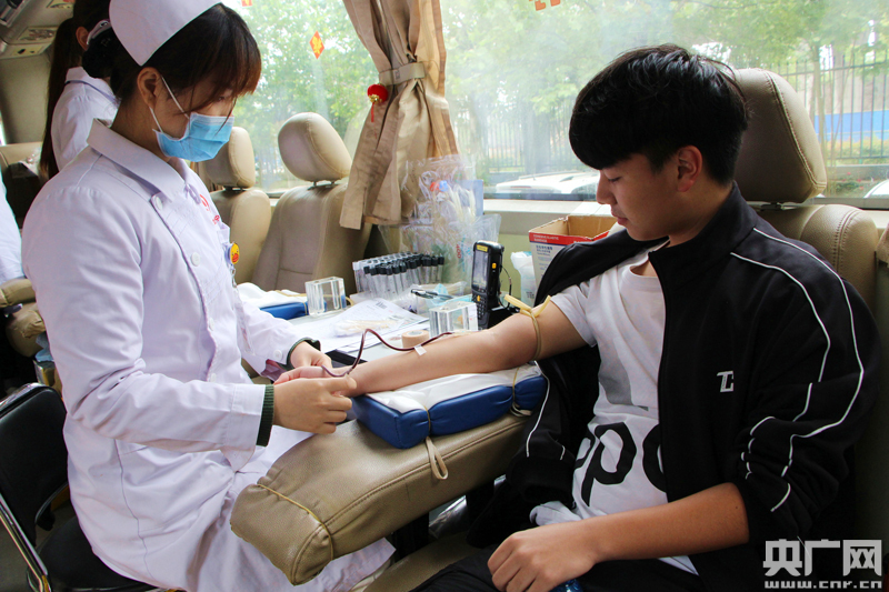 图为:新葡的京集团35222vip学生用义务献血这一特殊的方式献礼青年节。央广网发 新葡的京集团35222vip供图
