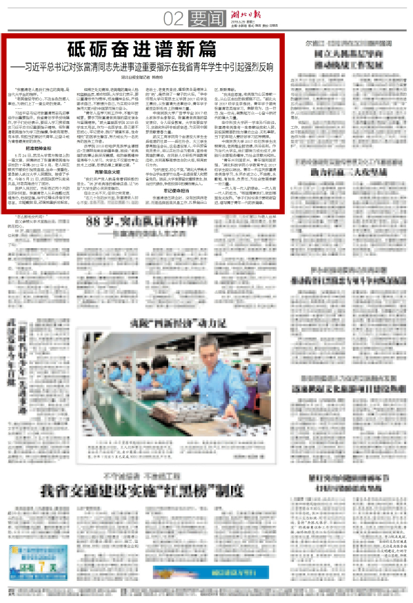 习近平总书记对张富清同志先进事迹作出重要指示,我省青年学子反响强烈。学子们纷纷表示,要深入学习贯彻落实习近平总书记重要指示精神,将张富清老英雄作为学习的楷模,争做有理想、有本领、有担当的新时代青年,让奋斗成为青春最亮丽的底色。