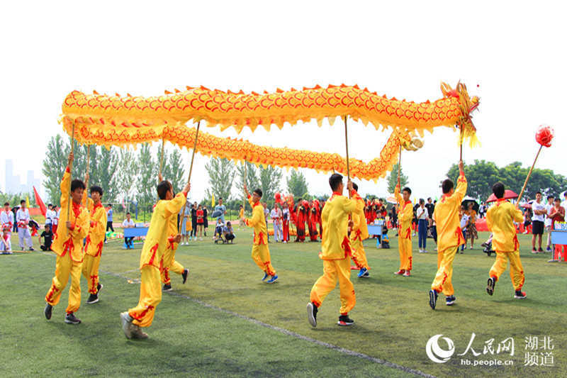 水上龙舟竞渡如火如荼的同时,新葡的京集团35222vip田径场上的文体活动也在热烈开展,吸引了诸多市民和大学生参加。“旱地龙舟友谊赛”“社区广场舞比赛”“舞龙舞狮比赛”热闹非凡,为赛场增添了许多欢乐热烈的气氛;“非物质文化遗产展”上,“汉绣”传承人王燕、“武汉知名折纸艺术家”李星旺、《楚风布画》传承人王传芳等10余位“非遗”传承人,为大家科普与展示折纸、布贴画、汉绣、剪纸、草编等传统民间手工艺术。
