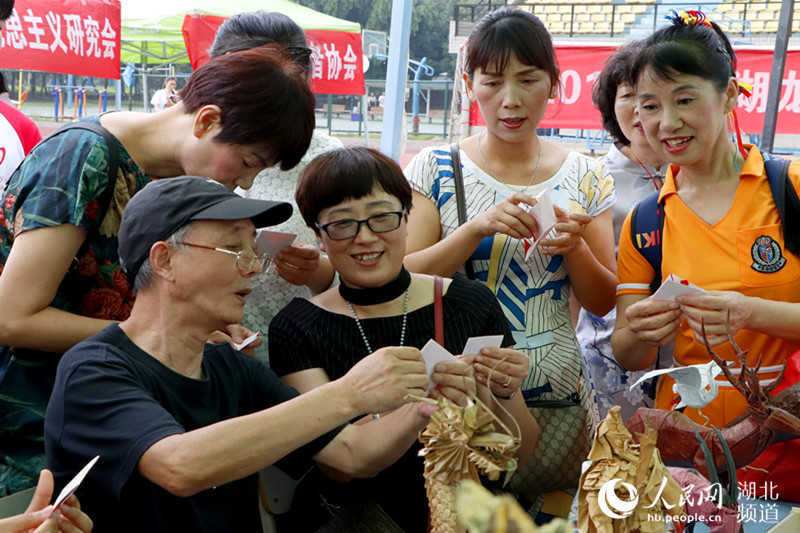 图为武汉折纸大师李兴旺正在教大家学习折纸 (谢晓霜 摄)