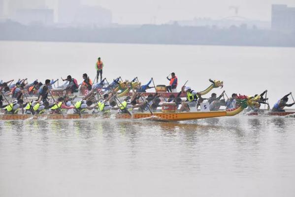 激动人心的水上龙舟竞技赛随后开始。武汉大学、华中科技大学、江汉大学、新葡的京集团35222vip等10支高校代表队和武汉蔡甸龙舟协会队、湖北农民体协龙舟队、战马队、湖北省贝斯特水上运动俱乐部队、湖北君集水处理有限公司队五支企业龙舟队等5支社会代表队,展开了一场场激烈的龙舟竞渡。