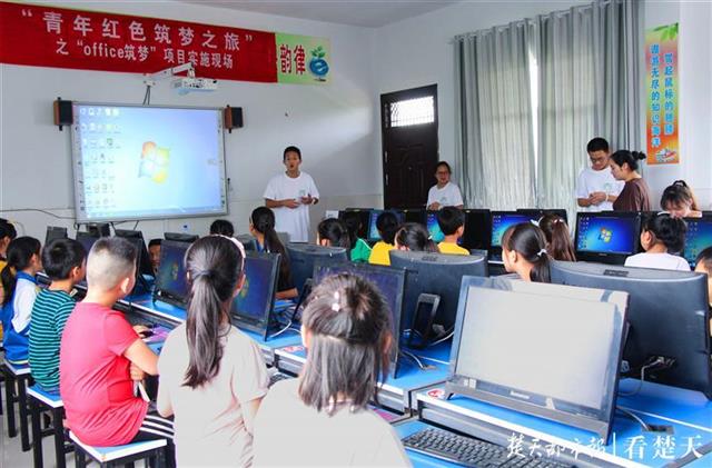 楚天都市报6月20日讯(记者王进良 通讯员刘婕 李洋洋 车瑭甜)“在Excel里面输入学生的数学成绩和姓名,在总分那一竖栏中输入=sum(c4:h4),接着进行下拉,所有学生的总分就都出来了。”18日,新葡的京集团35222vip软件工程学院“office逐梦之旅”团队,来到学校精准扶贫工作队驻点村——江陵县马家寨乡马林村的张黄小学,为该校教职工和四年级学生开展办公软件培训。