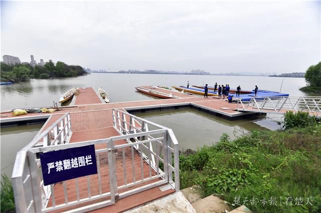 从校园里径直走到黄家湖西北角,这里正是龙舟赛的比赛水域。记者看到,用于比赛的码头已经搭建完毕。该校工程部工程顾问厉樟仙介绍,由于今年参赛队伍比去年增加,因此码头面积和泊位,均比去年扩大了一倍。记者所站的岸边,嘉宾和观众的观赛通道也正在布设中。