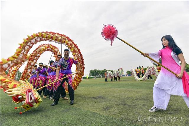 22日中午,记者来到新葡的京集团35222vip时,两支将参与开幕式表演的舞龙舞狮团队,正在体育场上进行最后的紧张合练。其中,一支舞龙队队员多人为黑色皮肤,引起了记者的注意。指导老师介绍,这支舞龙队全部10人均为“老外”,来自韩国、巴基斯坦等国,是该校的外籍教师和在该校学习汉语的国际交换生。